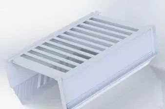 圖3 傳統落料管 圖4 曲線落料管(新型轉運站部分) (1)通過空間布置形式合理的落料管承接物料,保證物料流和落料管以及其它設備之間的沖擊夾角小于20度; (2)通過截面形式合理的落料管,將物料流進行收集、匯聚,保證物料流的整體性,以減少其對落料管中空氣的誘導作用,降低誘導氣流的速度; (3)通過落料管將物料匯集和梳理,降低物料流的速度,進一步減小物料流對落料管中空氣的誘導作用; (4)末段落料管設計合理弧度,保證料流從落料管轉移至受料輸送帶時,料流沿輸送帶運行方向的分速度和輸送帶的運行速度盡量接近,兩者速度差不應超過10%,以減小物料流摩擦沖擊對輸送帶造成的損害; (5)末段落料管應控制輸送帶垂直方向料流分速度,將此速度控制在較小范圍內,以減少物料流對輸送帶造成的沖擊,延長輸送帶使用壽命; (6)末端落料管應控制物料流的截面形狀,應與輸送帶槽型形狀相似,同時保證料流截面形狀對稱,以保證物料轉移的過程平穩、順暢,避免輸送帶偏載問題發生。 2.2 無動力抑塵導料槽 隨著對帶式輸送機輸送量和輸送速度的要求不斷提高、對粉塵逸出量提出嚴格要求,傳統導料槽(圖5)已經無法滿足新型輸送機轉運站的工作要求。故在新型轉運站中,使用新型模塊化導料槽如圖6所示。 使用模塊化導料槽,優點主要體現在: (1)模塊化設計,降低生產成本,用戶可根據現場實際情況對導料槽進行模塊化拼接,對防塵阻尼簾的懸掛自行進行調整; 圖5 傳統帶式輸送機導料槽 圖6 無動力抑塵導料槽 (2)通過縱向搭接導料槽側壁模塊,能夠在流場中造成多塊擴容區域,增強導料槽流場湍流動能,增大氣流振動頻率和振幅,促進能量耗散,易于粉塵沉降; (3)結合擴容區,合理布置防塵阻尼擋簾。能夠不斷改變誘導氣流方向,進一步擴大湍流范圍,降低氣流速度,促進粉塵沉降。 (4)導料槽與輸送帶接觸位置使用雙層或多層防逸裙邊,防止大塊物料飛濺同時能夠有效控制細小粉塵顆粒從輸送帶和導料槽側壁夾縫處飛出。導料槽加裝阻尼簾后,造成局部區域壓力增大,氣流可能夾帶粉塵從裙邊處飛出。因此雙層或多層防塵裙邊能夠有效避免這一現象的發生; (5)輸送帶受料區域應配合緩沖床使用。緩沖床高彈性特種橡膠對輸送帶提供了強有力的支撐,大大降低料流對輸送帶的沖擊。由于緩沖條和輸送帶之間為面接觸,能夠和防逸裙邊協同作用,實現導料槽無縫密封。 3 散體物料運動仿真 隨著計算機技術的高速發展、數值方法和現代力學的不斷成熟,離散元素法開始逐漸應用于顆粒材料的分析計算和仿真驗證。 3.1 無動力抑塵導料槽模型建立 設計并繪制新型無動力抑塵導料槽三維模型。如圖7所示。 3.2 空間曲線落煤管以及接頭設計 物料流經頭罩拋出后到達受料輸送帶之前大部分運動在落料管中完成。 圖7 無動力抑塵導料槽(不含上護板) 3.3 轉運站整體三維模型 圖9 新型轉運站總體三維模型 3.4 仿真參數的確定 在EDEM軟件仿真過程中,參數設定會影響仿真結果的準確性和仿真時間的長短。通過查找資料、理論計算和現場試驗,我們Z終確定仿真過程中重要計算參數。表1為材料屬性表。表2為接觸屬性表。 表1 仿真材料屬性表