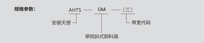 AHTS-安(an)徽天塑,CAA-單側犁式卸(xie)料器,06/08/10/12/14/16/18/20/22/24帶寬代碼。